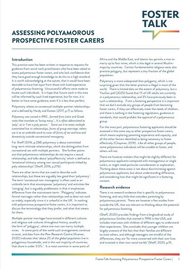 Adams P (2026) Assessing polyamorous prospective foster carers, Fostertalk